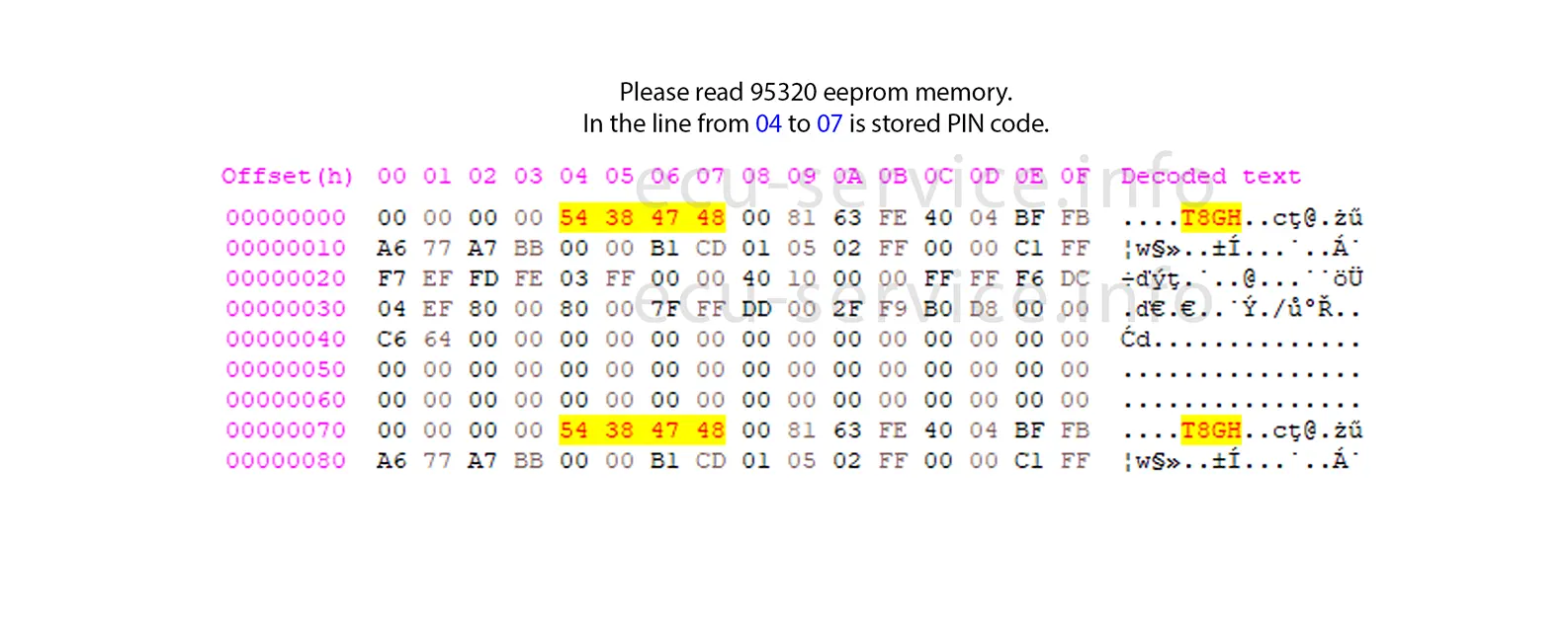 Please write PIN code to emulator eeprom according example: